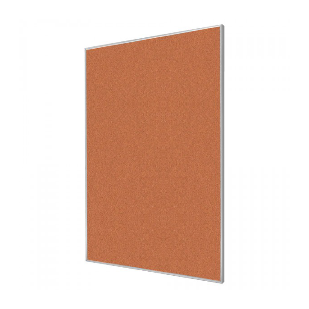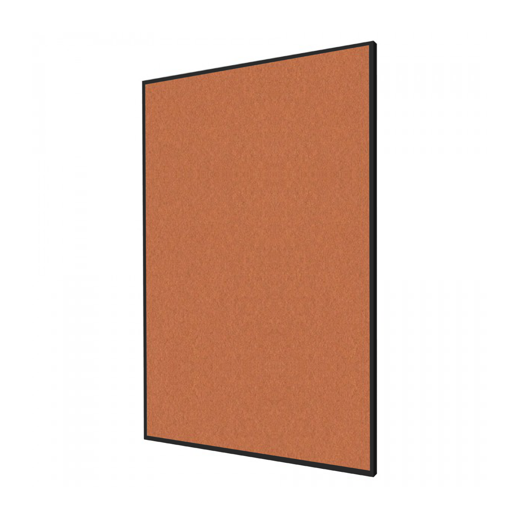 Vertically mounted FORBO Cork Bulletin Board with Minimalist frame. The thin 5/16" lip is designed to accent the perimeter of the board surface. Use this board as a life tool for posting significant messages, photos, and documents.